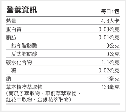 【為了配合衛福部針對食品的法令變更,公司產品之營養標示欄位可能因法令修改而略有出入,實際標示請以產品包裝上為主,如還有任何疑問,請撥打公司客服專線諮詢。】