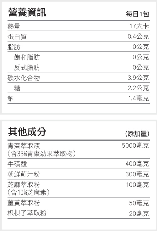 【為了配合衛福部針對食品的法令變更,公司產品之營養標示欄位可能因法令修改而略有出入,實際標示請以產品包裝上為主,如還有任何疑問,請撥打公司客服專線諮詢。】